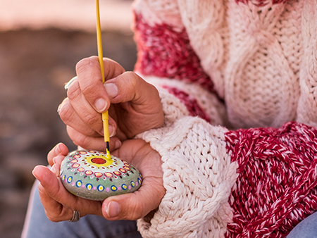 Ulike typer kunstverk utført med steiner og andre typer materialer.